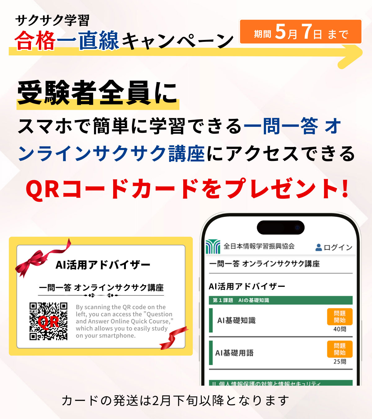 同時期に、合格者には合格証書・認定カードを発送致します。