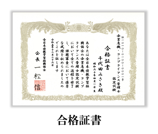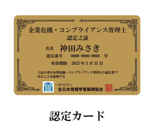 合格者全員に、合格証書と共に企業危機・コンプライアンス管理士認定カードが発行されます!