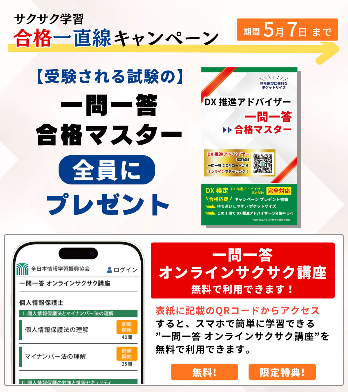 団体受験を検討されている企業様・団体様に学習書籍・一問一答マスターを無料プレゼントいたします。(申込検討中でも結構です。100人単位も可。)この機会にぜひ受験をご検討いただけますと幸いです。