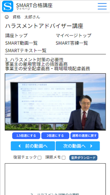 基礎から合格レベルまでの要点や重要ポイントを4時間程度のビデオ動画で好きなように分割して学ぶことができます。