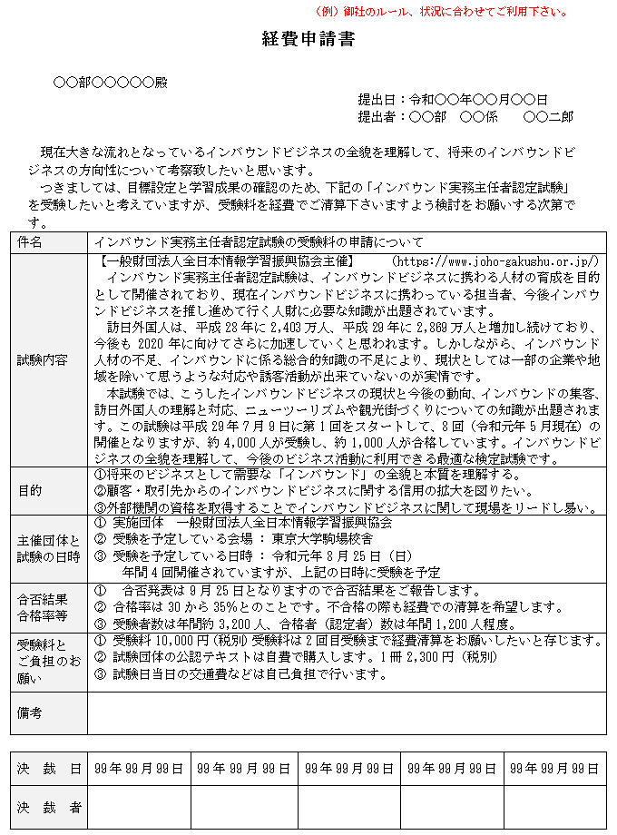 インバウンド実務主任者認定試験の受験料を会社の経費でご負担頂けるケースも多くあるようです。