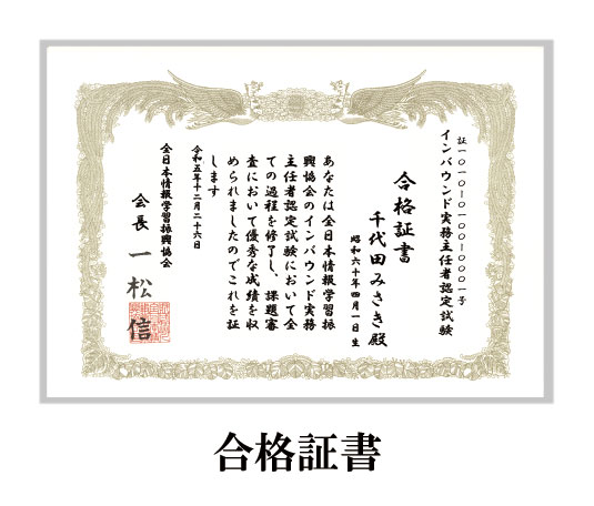 合格者はインバウンド実務主任者合格のロゴを利用することができます。ロゴを名刺などに印刷して、それとなくアピールすることができます。