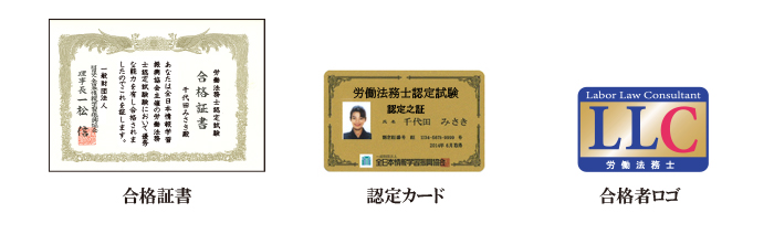 労働法務士認定試験の証書・カード・ロゴ