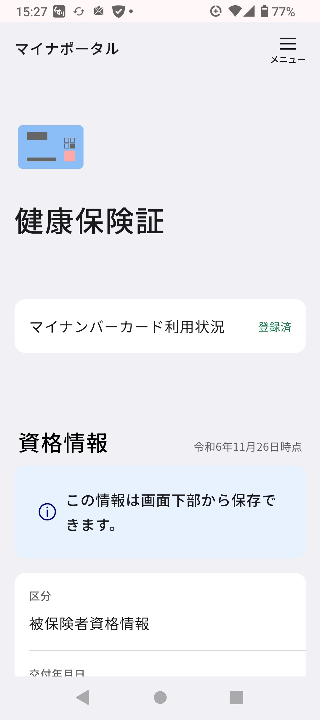 - 3. 「健康保険証」の設定が「登録済」となっていれば、マイナ保険証として利用可能です。