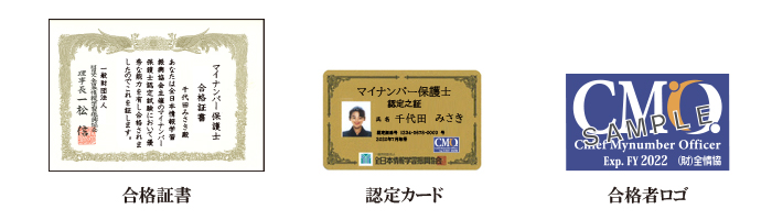 合格者全員に、合格証書と共にマイナンバー保護士認定カードが発行されます!