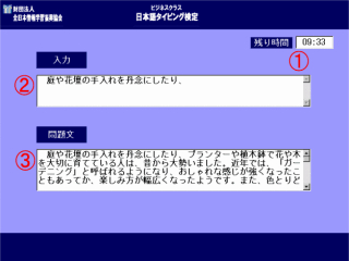 - 試験は、ビジネス文書や解説文の入力を2回実施(1回:制限時間10分)します。