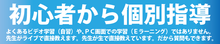 安い授業料の教室によくある、ビデオ学習ではありません。オンライン・ライブの個別指導で先生が直接教えます。受験料・教材費を含みます。コース料金以外に追加料金は一切ありません。下記の取れる資格の2級・3級は、6か月間取れるまで、何回でも当学院で受験料を負担いたします。