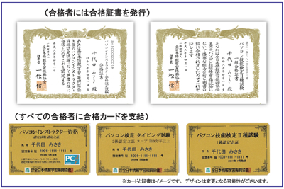オフィスでも一般においても、最も活用されるワープロソフトと表計算ソフトを駆使し、データベース機能の活用、様々な図表、グラフなどをともなう文書の作成能力を通じて、パソコンの総合的な操作能力と活用能力をはかります。