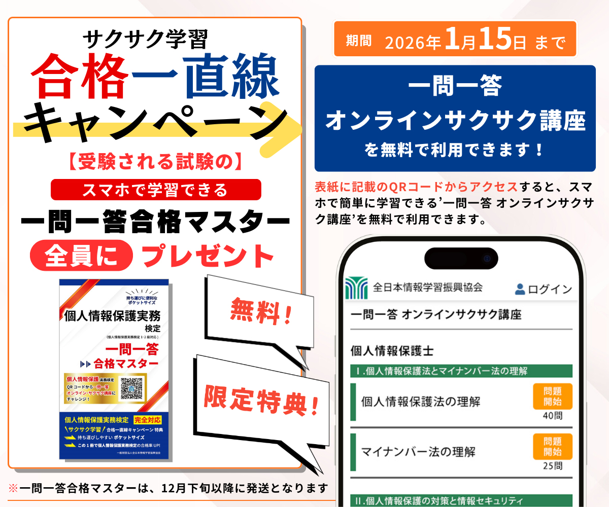 個人情報保護法は大きく改正され、現在、すべての事業者がこの法律の対象です。今、改めて学習し直す必要が出てきました。この機会に個人情報保護実務検定を受験することで、正しい知識を身につけて下さい。
