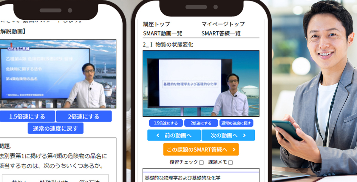 繰り返し復習もしやすく直前対策にも最適。スマホで軽快に視聴でき、通勤や休憩の数分がそのまま合格率をアップします。