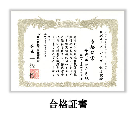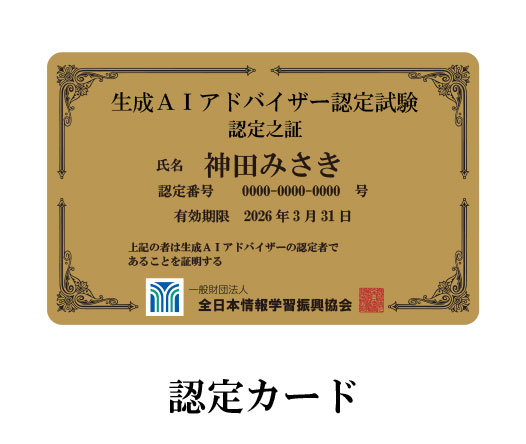 生成AIアドバイザー認定試験の合格証書と認定カード