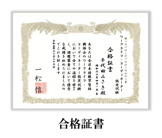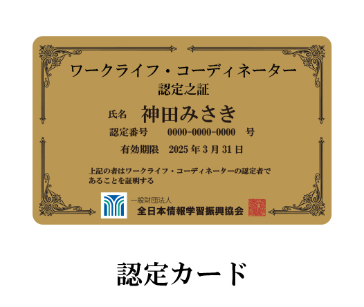 ワークライフ・コーディネーター認定試験の合格証書と認定カード