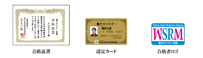 合格者のみに許されるロゴを利用することができます。働き方マスター試験に合格していることを証明するロゴを、名刺などに印刷して合格者であることを、それとなくアピールすることができます。